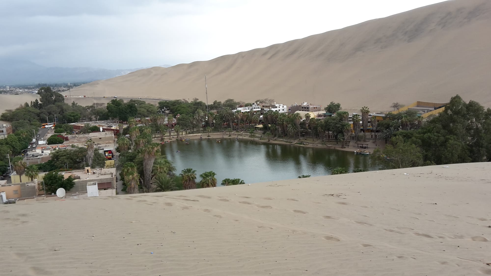 Haucachina: a lagoon surrounded by hotels, backpackers, tour companies and dune buggies, in the heart of the desert.