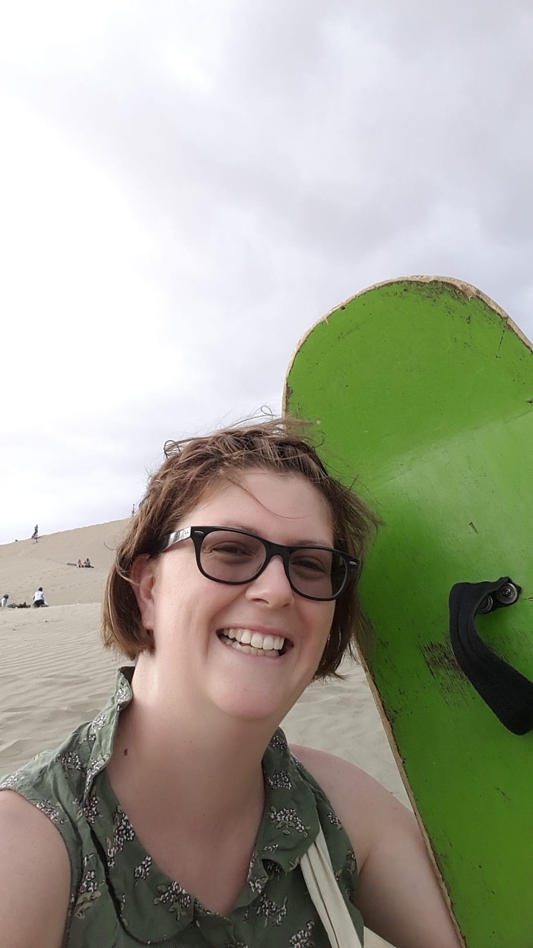 Most places hire out ‘sand boards’, which are in fact snow boards, complete with snow boots. From there you just walk to the end of any street and start the climb up a dune. As I am no athlete, I went the cheapest option and hired a homemade sand board from a lady selling drinks from an esky at the lagoon for S/.5 (AU$2). Being lazy and unfit, I chose the smallest dune to climb and then practiced surfing on a v. mild slope. As my confidence grew, I slowly crept higher and higher up steeper dunes… until an experienced sand boarder took one look at me and said,