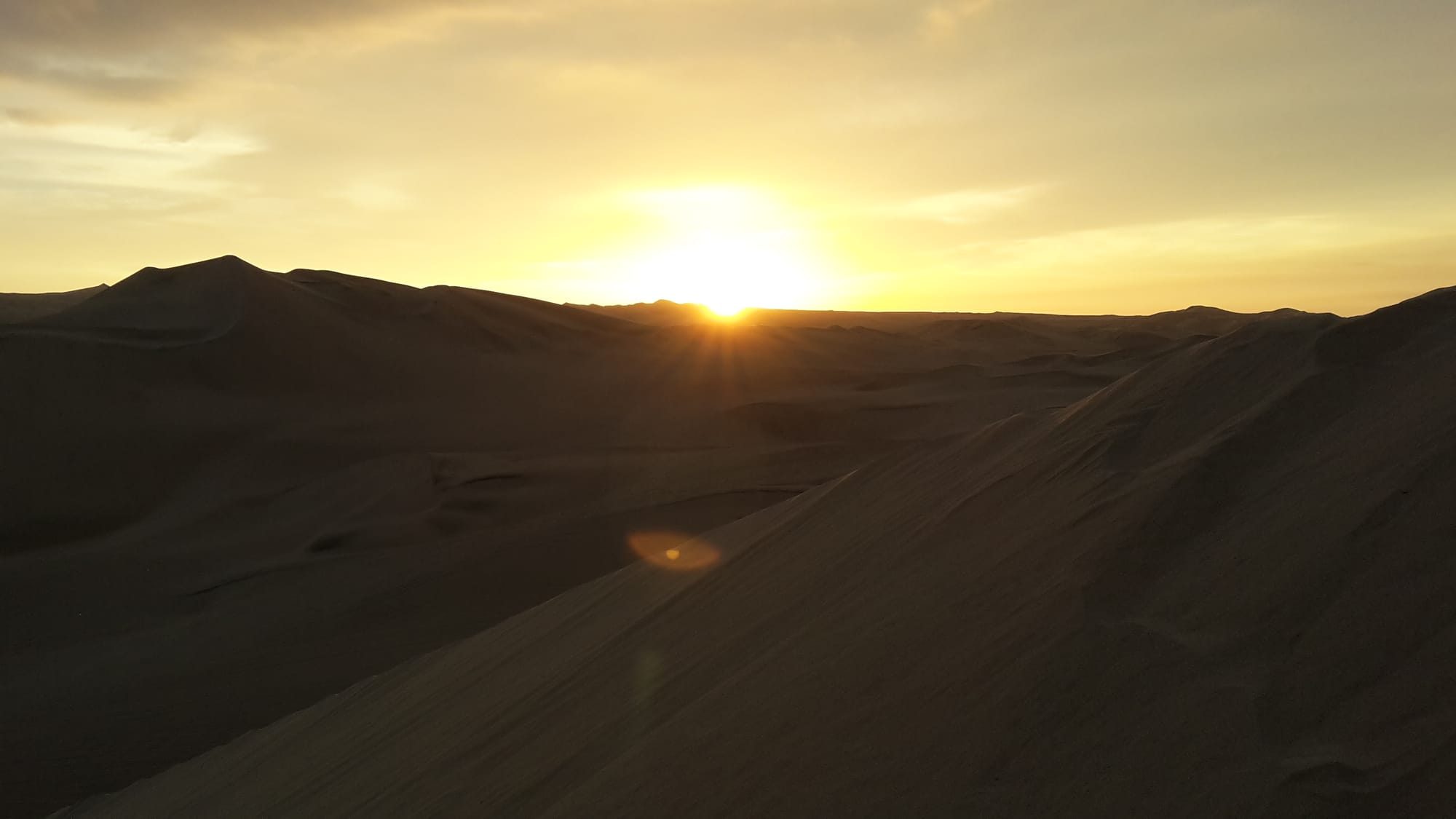 Michael says: I climbed the biggest dune for sunset. Quite the view, with desert all around wanting to engulf the nearby city of Ica. I met a Canadian couple half way through a 10 month trip up South America, and they let me share their beer. I returned the favour later.